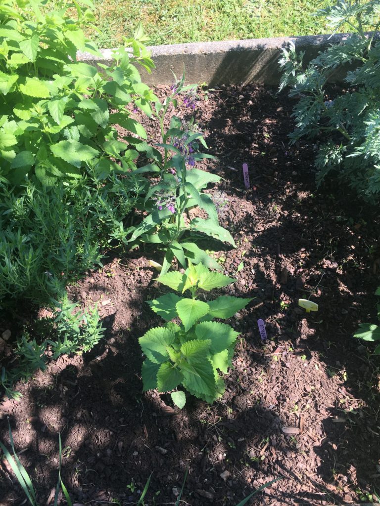 L’Hysope et l’Aspérule, ou ce qu’il en reste après le passage de mon chat … je verrai si au jardin elles reprendront
